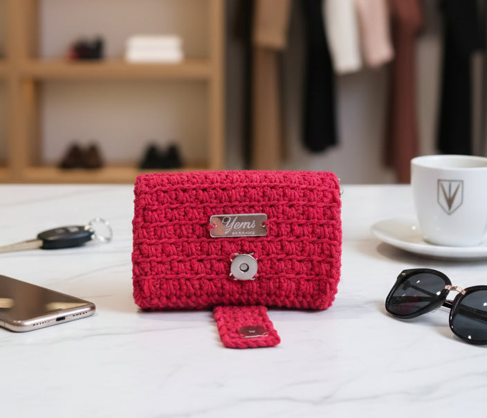 🧶 Petit portefeuille fait main au crochet – Rouge -100% coton ✨