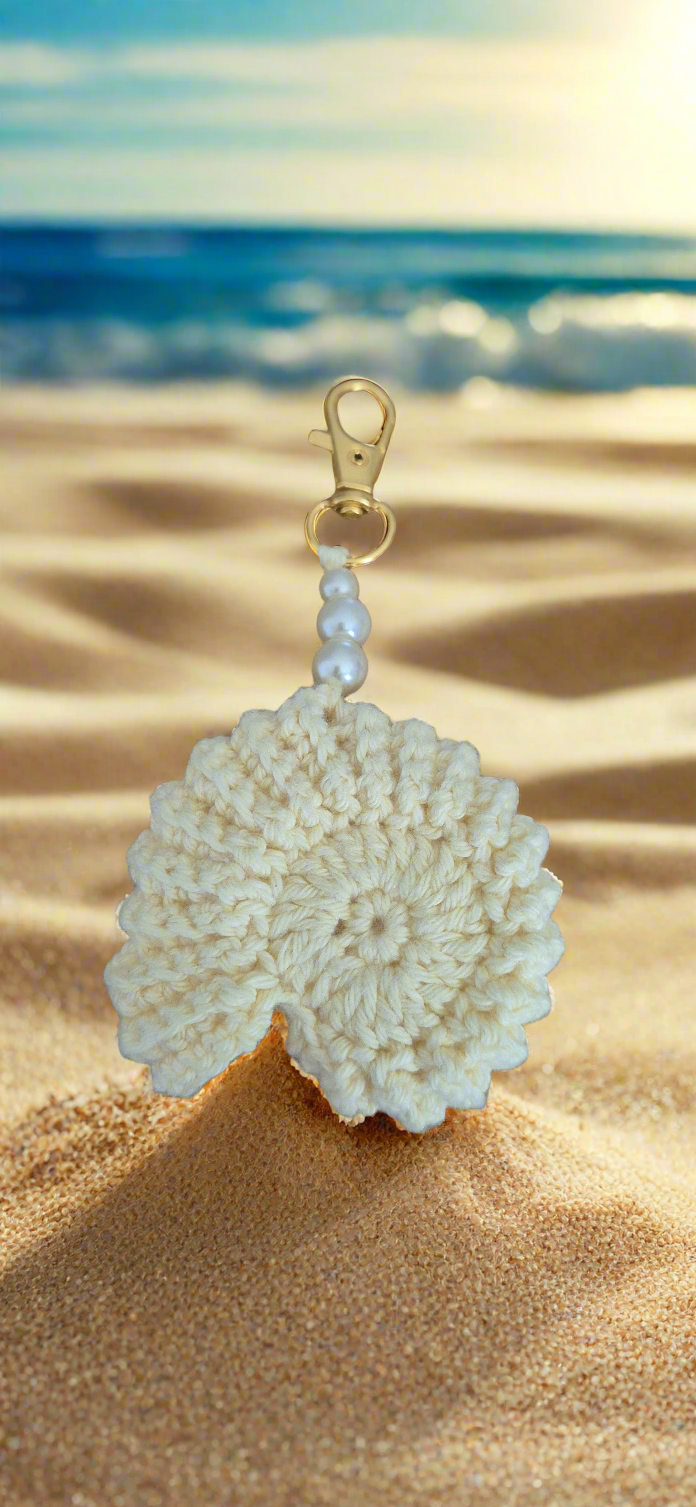 "Amenez un air de vacances et de plage partout où vous allez avec ce porte-clé en coquillage orné de 3 perles faites main. Pratique et unique, c'est le compagnon idéal pour vos clés et accessoires. Ajoutez une touche de mer à votre quotidien."