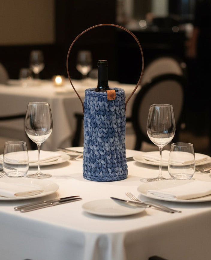 Porte-bouteille crocheté imitation Jeans – Edition Luxe 🍷✨