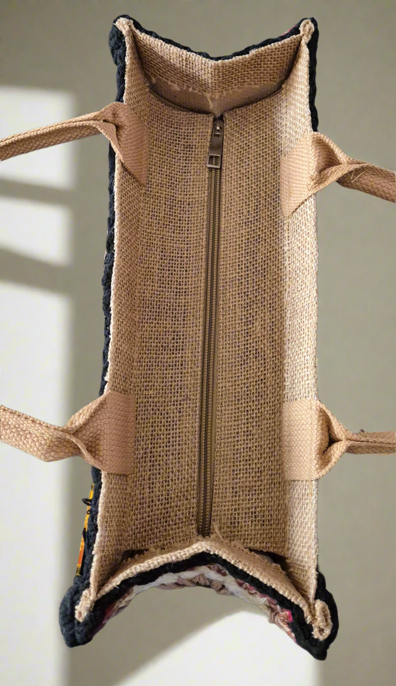Offrez-vous une pièce unique avec ce sac bohème en jute et crochet fait main. Réalisé artisanalement, il associe la robustesse de la jute naturelle à la douceur du crochet en coton, pour un style à la fois authentique, vintage et tendance.