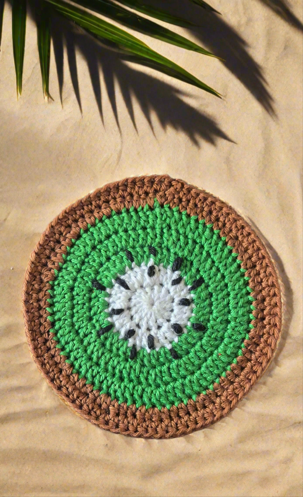 Ajoutez une note de fraîcheur et de fantaisie à votre table avec ce sous-verre fait main en forme de tranche de fruit. Confectionné en 100% coton, il allie douceur, originalité et artisanat de qualité.